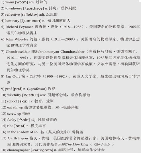 The gathered professors were telling stories of their encounters with 4)luminaries like 5)Richard Feynman, 6)John Wheeler, 7)Chandrasekhar or Leiden's own 8)Jan Oort. The 9)profs 10)wistfully recalled being 11)schooled at the feet of great masters, now past. Then my own professor stopped and turned to the students, who were 12)eating the scene up.