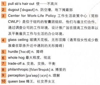 That Sarah is the only one in her Wall Street 2)dugout is not unusual. In finance, the majority of women are administrative workers. The industry-supported 3)Center for Work-Life Policy says only 14% are executives. Karen Peetz is one of them.